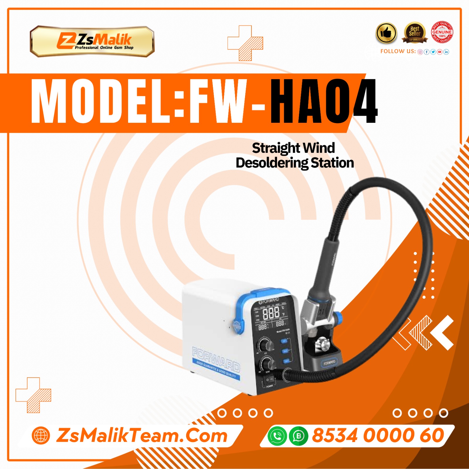 The FORWARD FW-HA01/02/03/04/05 Spiral-Wind Hot-Air Desoldering Station is a robust and efficient rework tool tailored for electronics repair technicians. With 800 W of heating power, it rapidly reaches high temperatures and delivers precise control — making it ideal for mobile phone motherboard repairs, CPU/BGA desoldering, and PCB work.