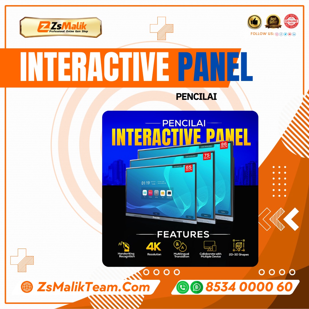 High-resolution 4K interactive flat panel with multi-touch capabilities — ideal for smart classrooms, coaching centres, training rooms, and hybrid teaching setups.