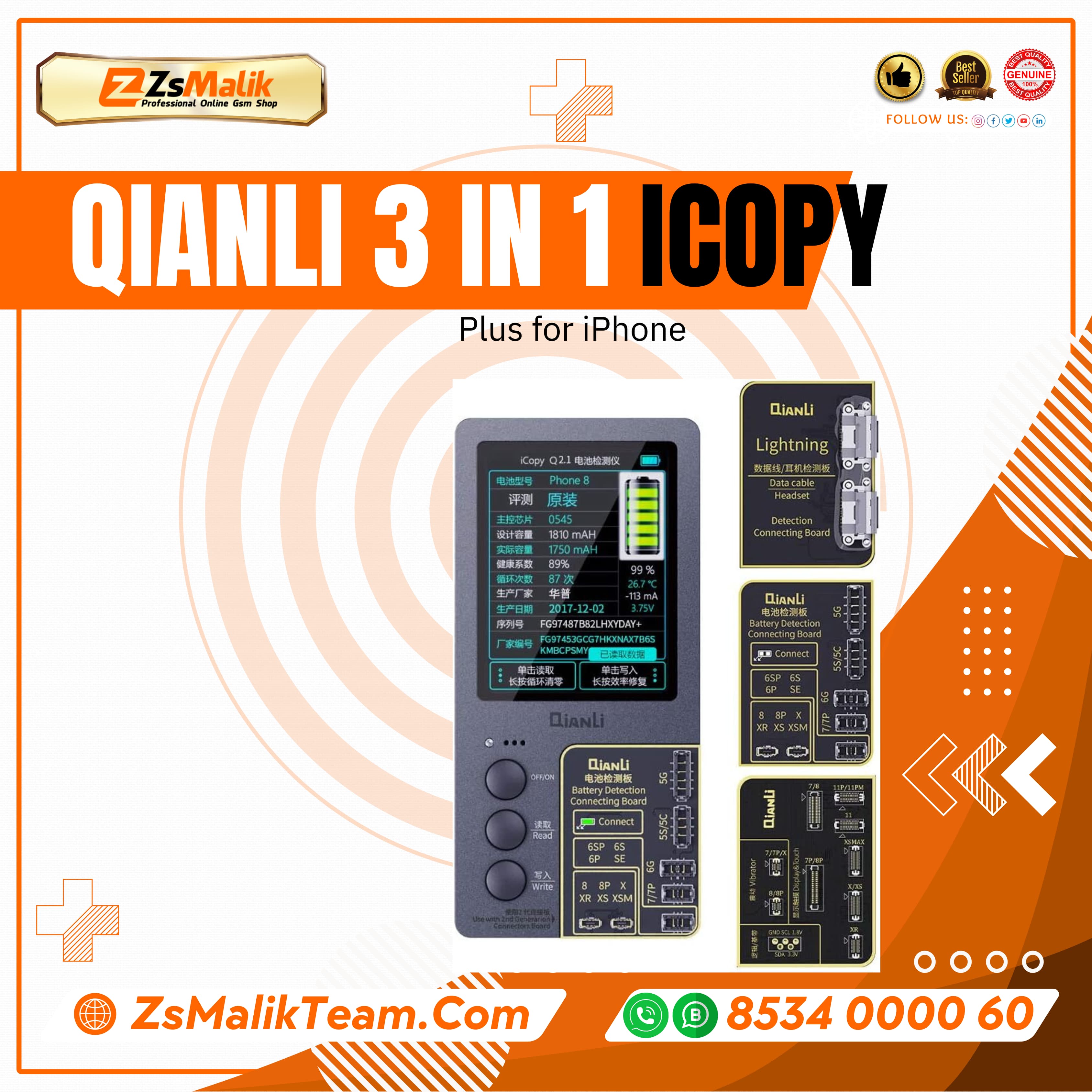 5.Available to test & modify battery data, clear battery life cycle and modify battery efficient(Battery Connector Board required)